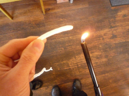 ターポリンを枠に縛り付けるロープは 丈夫なポリエステル製を別途購入。 ロープの端は火であぶりほつれないように処理しました。 |