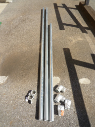 継手はヘキサゴンレンチで固定できるので 組み立ては簡単。 この部材は看板が地面に挿さり過ぎない様にする為に購入。 水平の調整にも使う。 |