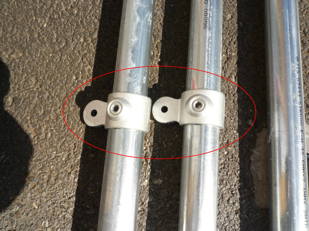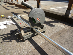 足場単管パイプと継手を仮止め。 |