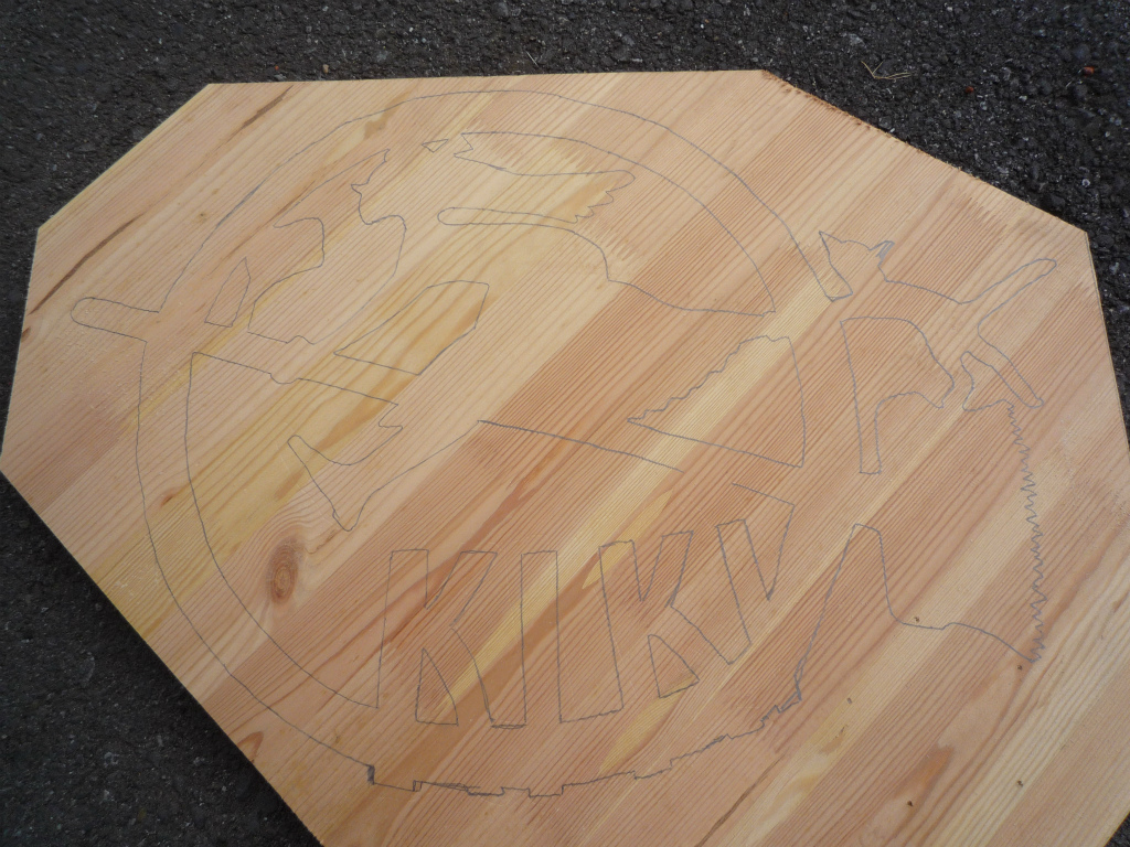 端材の集成材板に下書きをします。 |