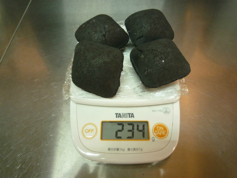 ウチの場合一回に豆炭4個で丁度良く、 12kg÷234g=約51回分 980円÷51回=約19.2円 (豆炭1個あたり約5円)
