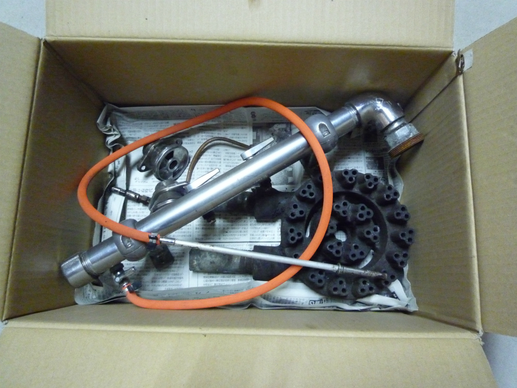 掃除をしながら一度ガス部材を外す。 後日、小さいプロパンガスボンベを ホースで接続して使えるようにもした。