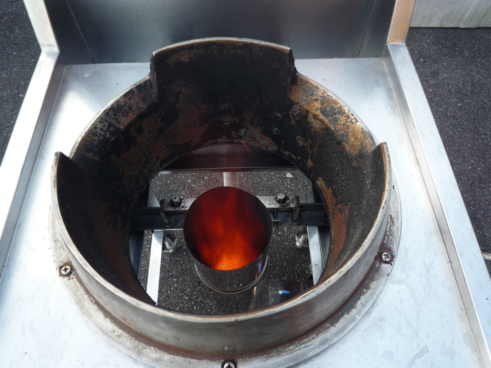 ロケットストーブ式中華レンジの炎。