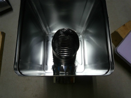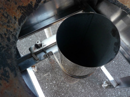 煙突部材エビ曲90度を一斗缶内側から挿す。