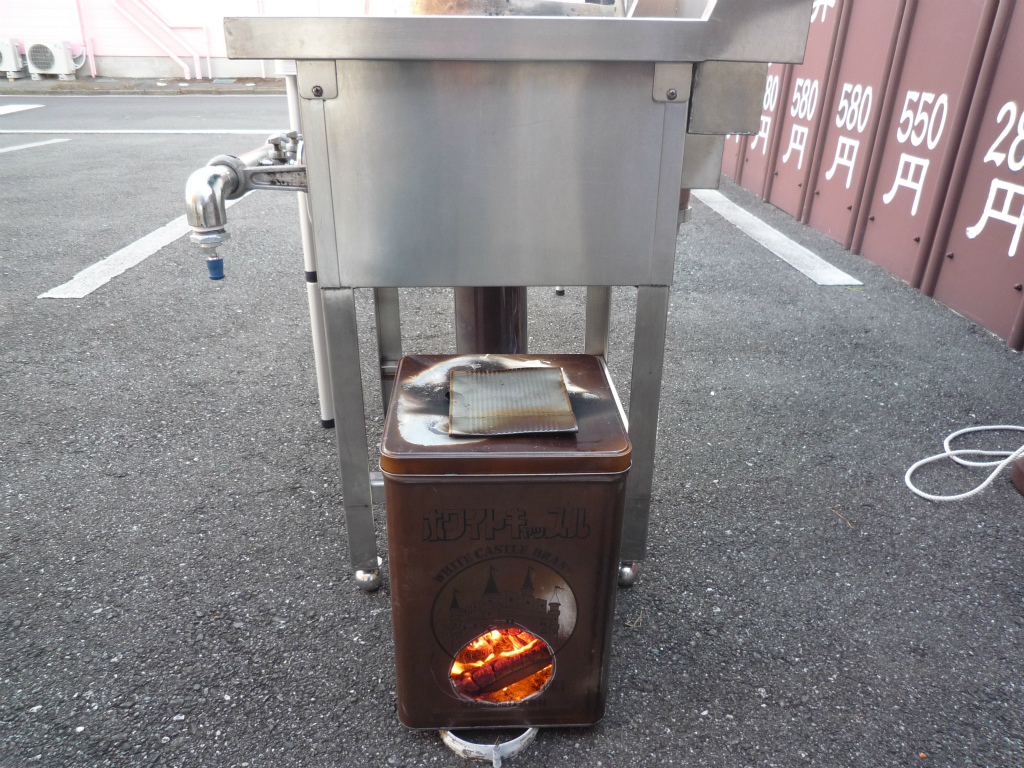 一斗缶でたき火をするぐらいの勢いで薪をくべていく。