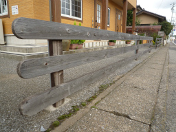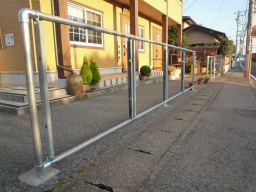 木製柵を撤去し、足場単管パイプを抜いた後の写真。 |