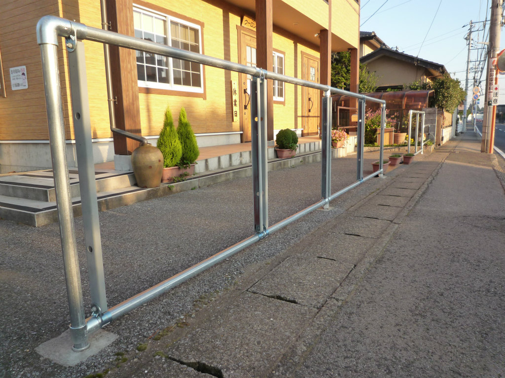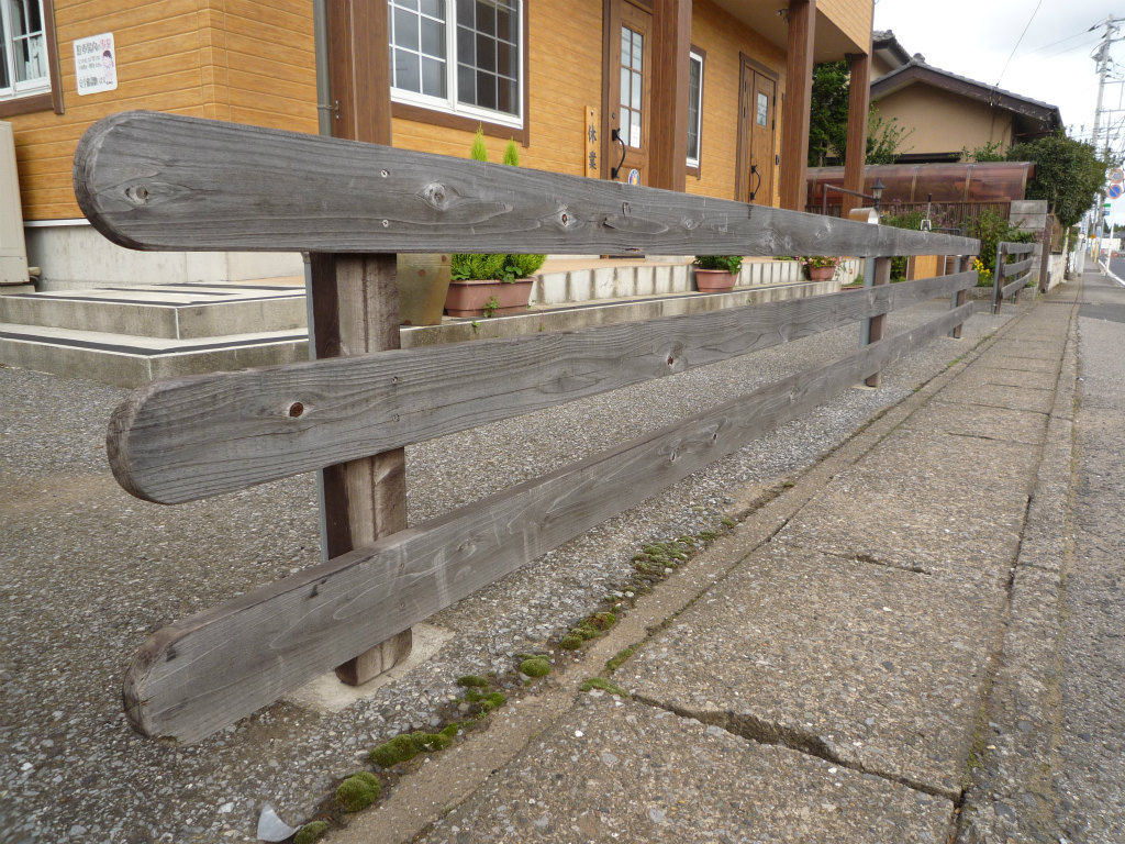 太陽光パネル設置前の写真。 足場単管パイプに自作木製柵を取り付けていた。 |