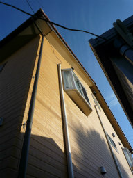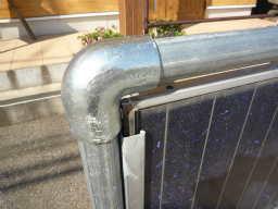 電設資材のダクターチャンネルは東向き片面設置の枠として使用。 切断面はジンクスプレーで塗装。 |