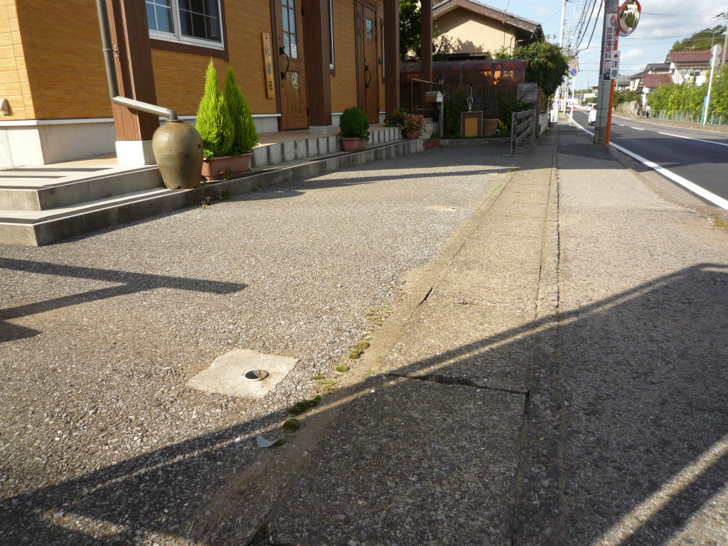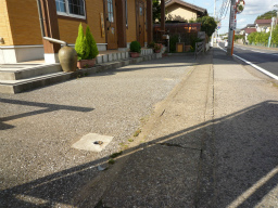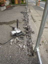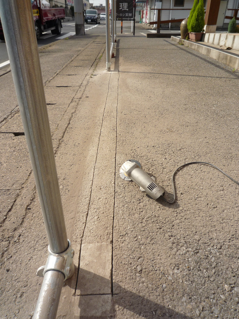 ケーブルを通す為、アスファルトをはつる。 ディスクグラインダーにダイヤモンドカッターを取り付けアスファルトを切り込む。 |