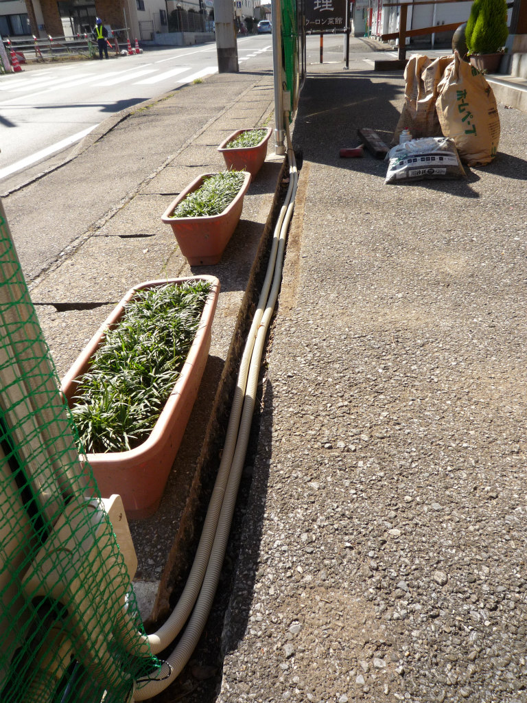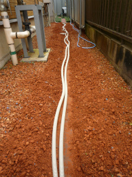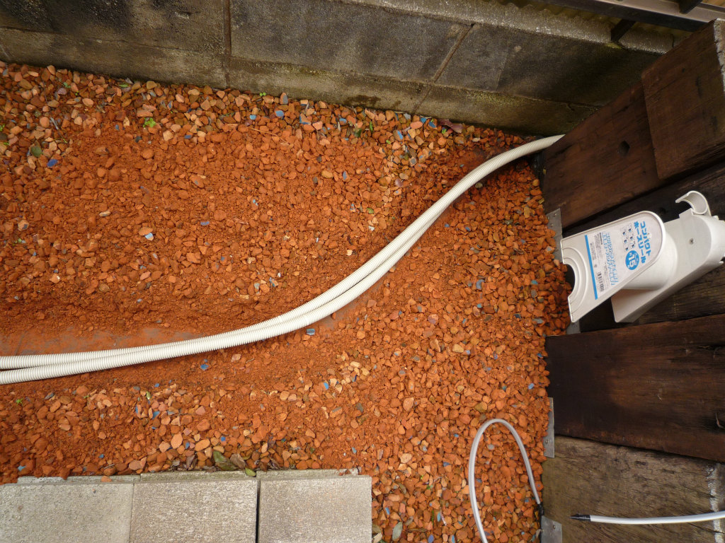 電設資材のPF管にVVFケーブルを通し埋設。 |