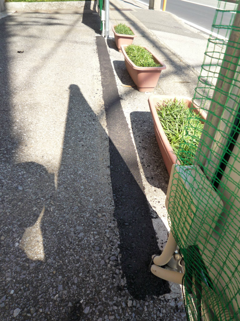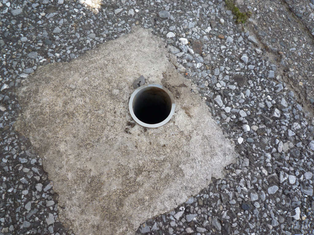 水道用塩ビ管VP50を80㎝埋めてあり、それに足場単管パイプを挿していたので太陽光への移行が容易に出来た。 |
