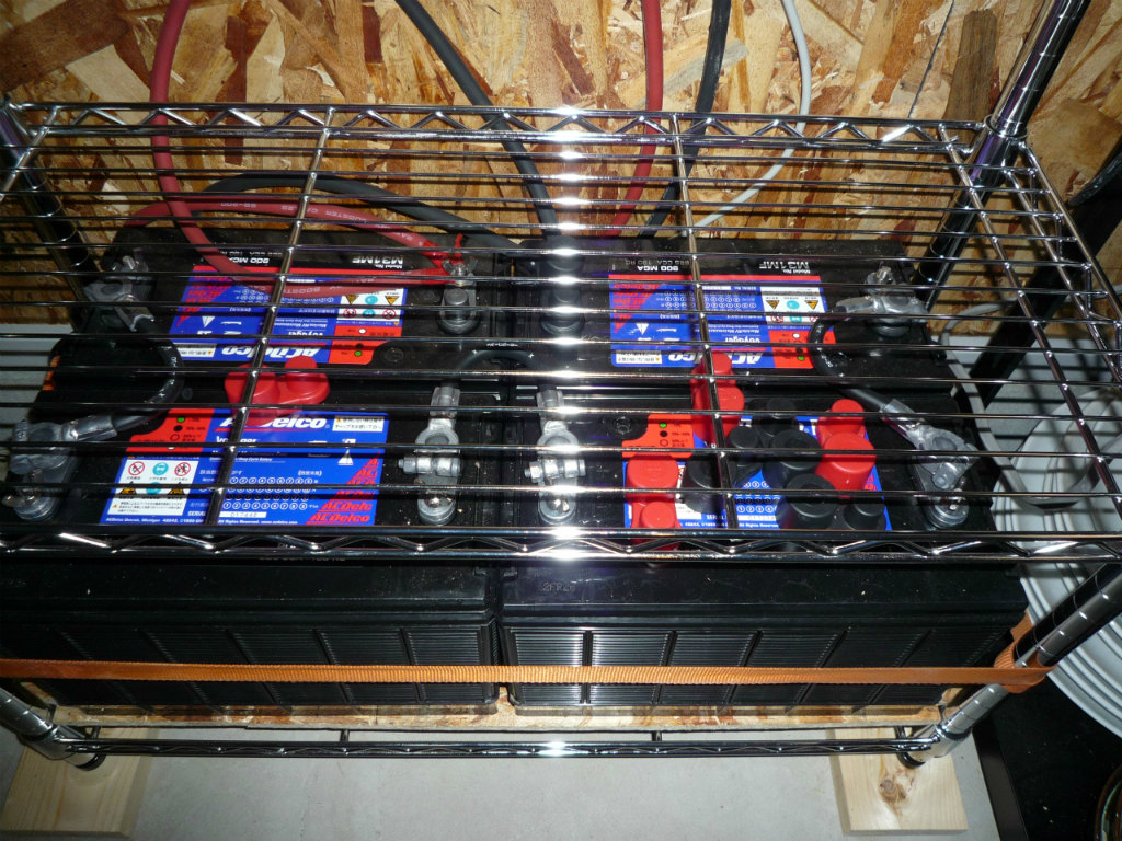 バッテリーはacデルコのボイジャー(AC Delco Voyager)M31MF_12V_115Ah。4個直列で48V×115Ah 5520Wh。このディープサイクルバッテリーは充電電圧が16v必要なのでお勧めできない。