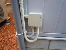 このアウトレットボックスは、インバーターからの屋内への非常用コンセントの配線が通っている。 |